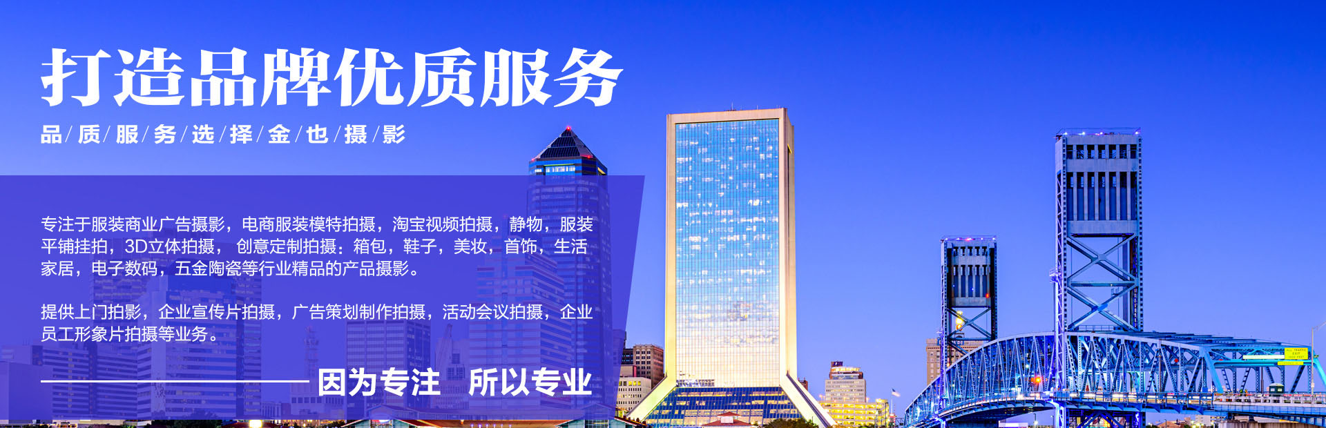 廣州金也攝影有限公司 聯系人:莊小姐 電話:19867631469(微信) 地址:廣州市白云區白云湖創意產業園G棟1樓 攝影空間103室 |